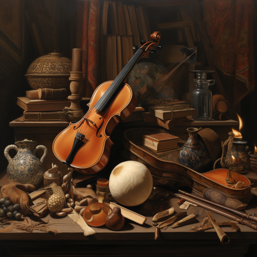 "An ancient, medieval-inspired scene resembling an old painting from the Middle Ages. The artwork features musicians playing traditional instruments such as lutes, harps, and flutes, with a choir of singers dressed in medieval robes. The scene takes place in a grand, stone-walled hall with high, arched ceilings and glowing candlelight, evoking a sense of history and tradition. The palette should consist of rich, earthy tones like deep reds, golds, and browns, with intricate details in the clothing and architecture to reflect the medieval era. The overall composition should feel like a centuries-old manuscript or painting, capturing the essence of ancient music and the timeless beauty of this medieval playlist." --s 250 --style raw