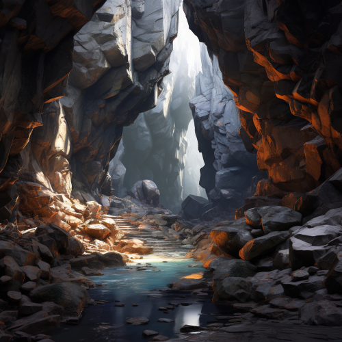rocky surface with wave shaped, dark black rocks with lava made out of golden metal flowing down like a river, top perspective, Mysterious, Enigmatic, Otherworldly, Mystical, Artistic, Premium, Professional, Sophisticated, Elaborate, Elevated, Playful, Poetic, Metaphorical, Professional, Clear, artistically polished --ar 3:2