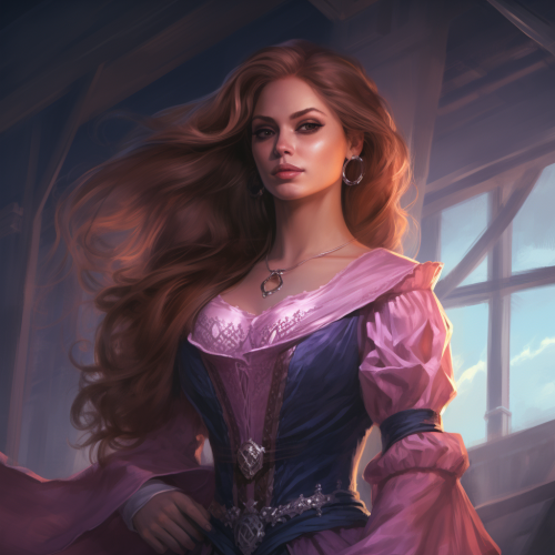 gorgeous rich lady with long violet hair, 40 years old, magic, mystical, magician, danger, grime, dnd art