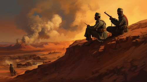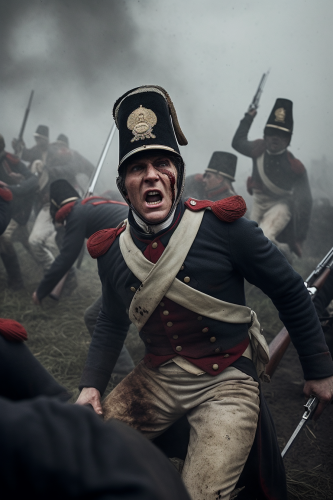 13. Napoleon justified his decision, a scene of Napoleon speaking with his officers, 1799, in a military tent filled with maps and documents, outside the tent, soldiers and horses in the background, medium shot showing his commanding presence, hyper-realistic, photo realism, cinematography --ar 9:16