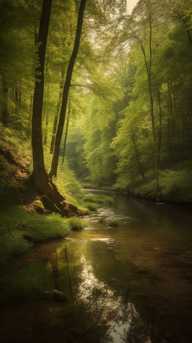 high-res. ultra-realistic style. lush meadow bathed in the light of dawn. 1 front view ginger woman with freckles in a white short-sleeved dress emerging from a pond, her arms outstretched, her eyes closed and her head towards the sky. --ar 16:9