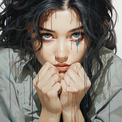 cover of a young woman ashamed, hiding her eyes, comics style, balance of whites, pastel colors --s 250