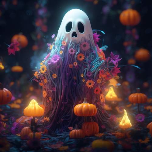 Halloween ghost decorated with colorful flowers stylize very high 4k