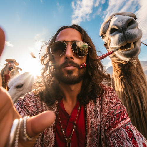 Jesus in dubai, jesus with a camel, jesus with emiratis, jesus smoking a shisha with prince saud, jesus smoking shisha, sunglasses jesus, sunglasses reflection, camel focus. Selfie, instagram influencer, instagram post
