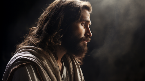 profile JESUS PRAYER , The image should focus , hyperdetailed, high resolution, UHD, 8K, Ultra High Definition, High Quality, 32K, HDR, --ar 16:9
