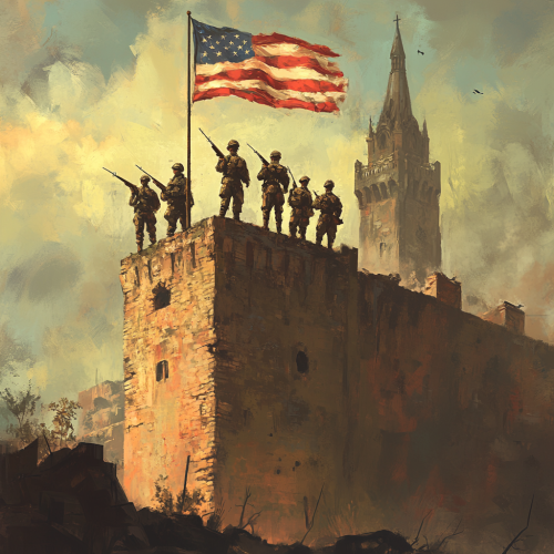 Fallout game series, wasteland, battle damaged T-60 power-armor painted in United States flag colors, wielding Power Glaive, fighting off hordes of Scorched, photorealistic, hyperrealistic, 32k resolution, dynamic lighting, dynamic shading, Unreal Engine, Highly detailed, 3D render