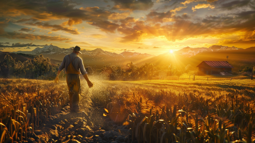 a farmer scattering seed, biblical times, epic, golden hour, photo-realism --ar 16:9 --style raw
