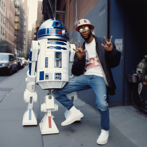 Dynamic, visual journey through 50 years of Hip-Hop culture, from its roots in the South Bronx to its global influence today. Dive into the vibrant imagery, iconic artists, and evolving styles. Now, let generative AI take you on a glimpse into the future of Hip-Hop, creating visuals that merge classic elements with futuristic innovation. Share your vision of what the next 50 years of this genre might look like with AI as your artistic collaborator.