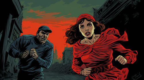 1950s comic book graphic style American city daytime street scene --ar 16:9
