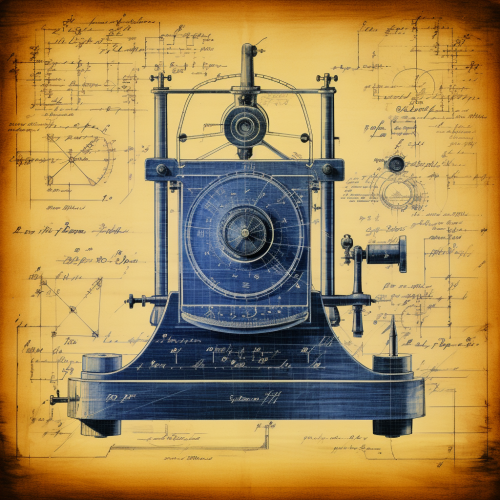a blueprint, schematic, of an early radio device to contact the dead that has a central dial, technical drawing, early 1900s