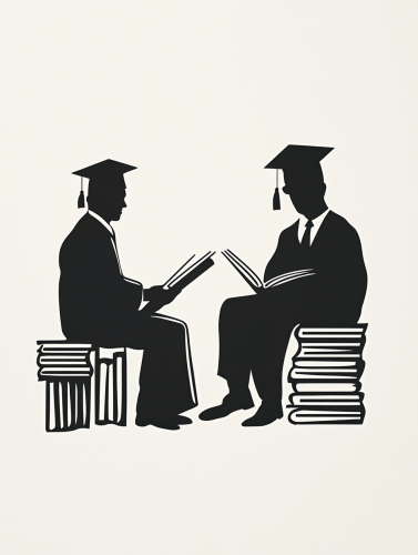 a simple vector illustration of implicitly describe scholar and expert figures with a monochrome background and white space around the whole design. --ar 3:4