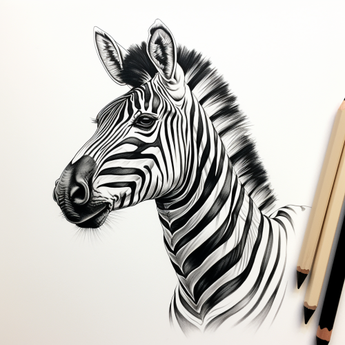 high contrast black and white zebra drawing in a sketchbook