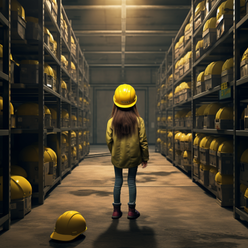 Data Appropriation, focus on a conveyor belt carrying files, images, and icons into a large vault, setting is an industrialized data storage facility, mood of systematic hoarding, Photography, composite shot using a Sony A7 III, 35mm lens, f/1.4 aperture, --ar 16:9 --v 5.2