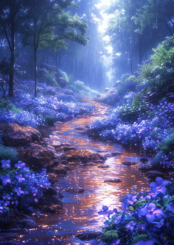 After the rain, freshness. Fantasy Artistic mastery image with Possession, Champion, Fantasy RPG style, and a Zooming view --v 6.0 --c 15 --ar 5:7 --s 750