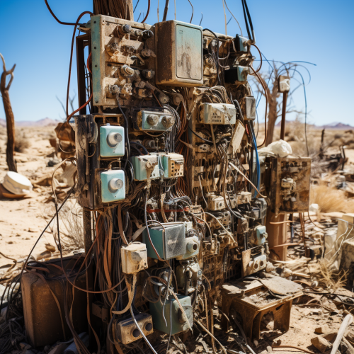 old corroded electrical equipment, wirecore, in the desert --s 250