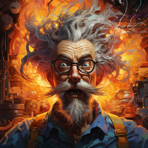 cartoon, comic, a crazy professor with disheveled hair, electricity, voltage, vibrant colors --s 750