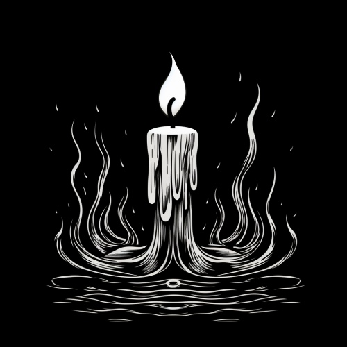 !imagine a woman with pale grey skin. Her skin is made of dripping candle wax and she has a lit flame on top of her head. She is wearing flowing robes with metallic silver adornments. She is standing at the edge of a cliff at night time, and she is staring up at the moon with an orb of magical essence in her outstretched hand