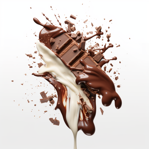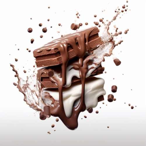 chocolat cream and vanilla, chocolat bar, exploding, realistic photo, white background