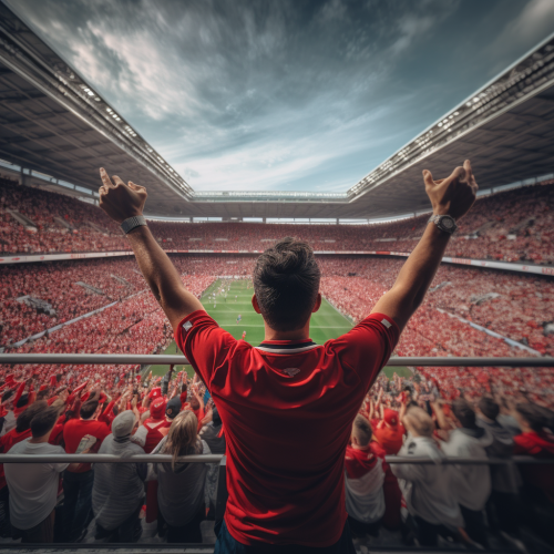 the seats in the background of the stadium full or aresnal fans. Don't change anything to do with the player celebrating
