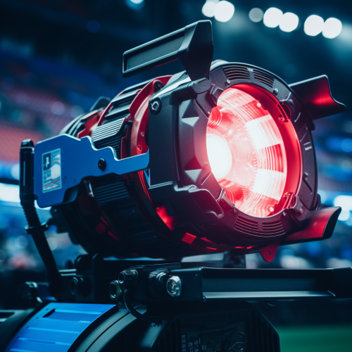 A beautiful Tanzanian girl with long hair sitting in the stands of a football stadium, wearing a white t-shirt, looking directly at the camera with wide-open eyes, shouting in joy about her victory. Her mouth is open in a smile, fists clenched in excitement. Behind her, the stadium is visible with fans clearly seated in the stands, and a shimmering blue glow