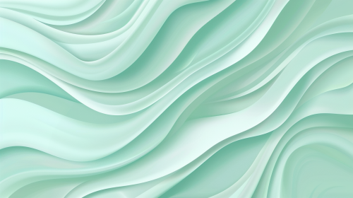 A pastel aqua green vector background with layered, flowing wave patterns, taking inspiration from the third reference image. The waves have a soft gradient and are layered to create depth and movement, with abstract elements scattered throughout. This design is ideal for a dynamic and elegant webpage. flat design, vector pattern, flowing waves, pastel aqua green, layered effect --ar 16:9 --v 6.0