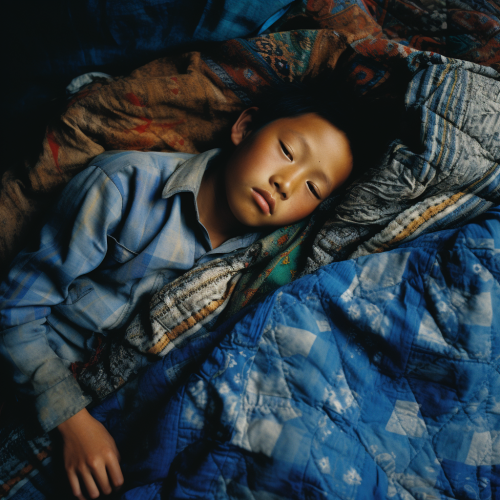A serene and cozy image inspired by 'ë‚˜ë¹„ìž ' (butterfly sleep), evoking a sense of gentle, peaceful rest. The scene shows a close-up view of a soft, warm setting, such as a sleeping baby wrapped in delicate, airy blankets. The color palette includes pastel hues--soft pinks, gentle blues, and warm creams--creating a tranquil, dreamlike atmosphere. Soft light filters into the scene, adding a warm glow. The style is gentle, comforting, and captures the innocence and calm of a peaceful sleep. in korea. 1950's