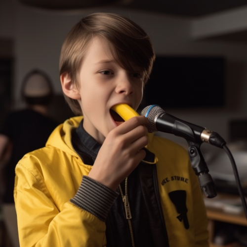 Close-up of a peeled banana in the hand. Surrealistic style with steamy smelling smoke emanating from the peeled banana. The background is minimal, smooth and softly coloured, creating a slightly dreamy or futuristic atmosphere. The hands are greyscale, contrasting with the bright yellow banana and luminous effect. Photo quality. --style raw --s 750