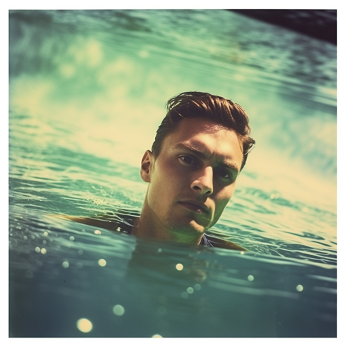 polaroid photo of male swimmer, in the style of wes andersen, steamy effect, college men, beautiful light, photorealistic, detailed, authentic human quality, 8k