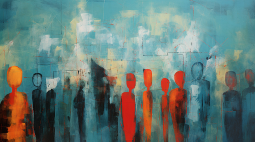 People on fire: abstract, symbolic, minimalist, dramatic silhouette art.