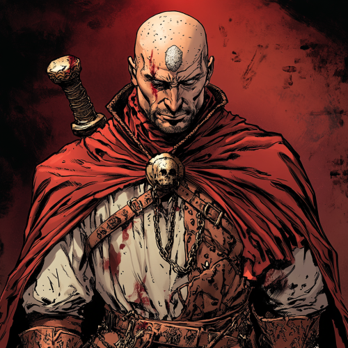 Persephone from the Duma Key Stephen King novel. With ghostship. Female who wears a red robe. Her face has grin as wide as her face. Third eye on her forehead. Claw hands.