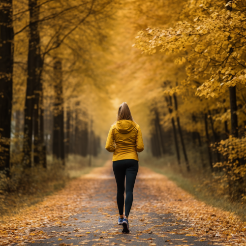 Person exercising with cortisol molecules disappearing. Stress regulation visualized.