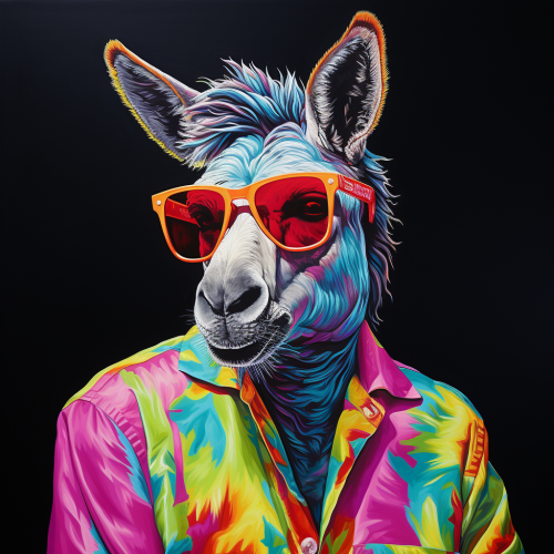 a donkey wearing sunglasses and a hawaiian shirt, neon colors, hyperrealistic, intricate detail,