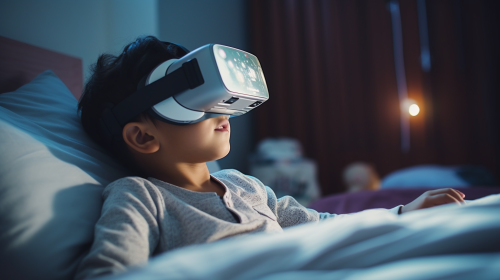 Person in VR glasses interacts with holographic shapes