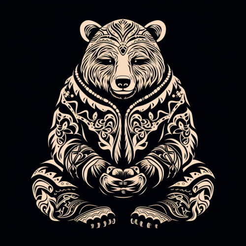 meditating buddhist bear, free brushwork, thick lines white lines, vector, t shirt design, simple, thick lines art, tribal celtic art, tattoo illustration, feeling of wisdom and inner peace --v 5.2