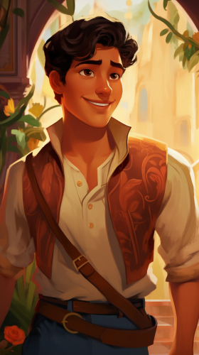 illustration of Manny Delgado played by Rico Rodriguez as a disney prince, disney style, hi def, --ar 9:16