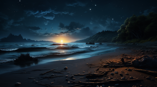 full moon over see on the left high resulation cold colors --ar 16:9 --s 250
