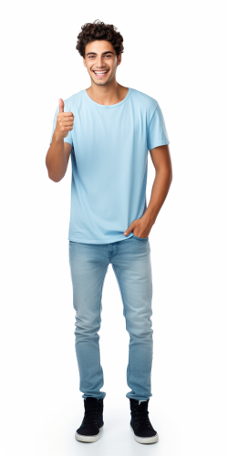 A photorealistic independent Male 25 to 33 years old, very positiv and smiling infront of a white backdrop, looking very motivated and seems to be very confident in a Sporty business casual look, he is holding a phone in his hands and looking at it. he seems very satisfied. high realistic photo taken in a proffesional Photostudio. very clear and crisp appearance, exposure time 125 sec. to 250 sec. ISO 100 to 200, aperture 8 ,