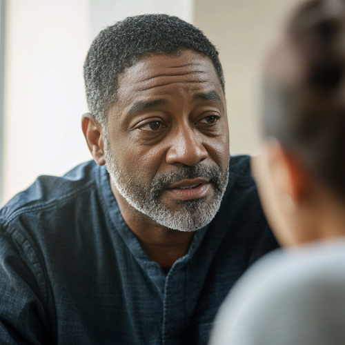 an African American couple, both sad and upset, one on both sides on the door, they both have their knees to their chest trying hard not to cry, winter season --ar 2:3