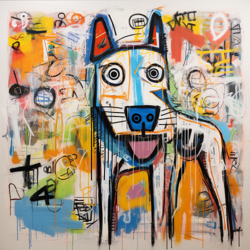 Large dog seated sideways
