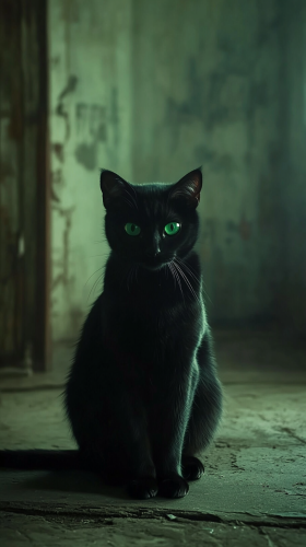 gothic black cat, side view, elegant walking, sleak fur, intense, castle, dramatic lighting, photorealistic, Leica M10-R 8k, Leica 35mm lens, Tilt Blur, Shutter Speed 1/ 1000, F/ 5.6, Super - Resolution, --ar 97:145 --s 250 --v 5.2