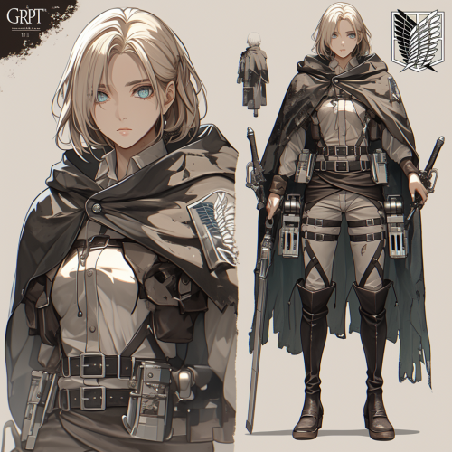 character design sheet, A character with 3d maneuver equipment in attack on titan anime in the style of Overwatch and Valorant, feminine (masculine) body, stunning, detailed, beautifully color-coded, anime style, unreal engine, octane render, natural lighting --stylize 750 --niji 6