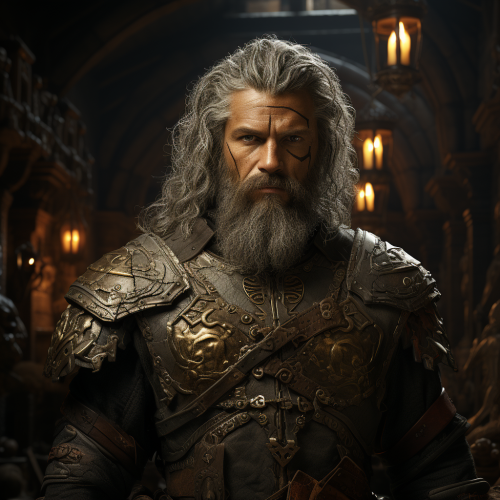 Make the character Grimm Stoneheart. A towering goliath adorned in ornate, meticulously crafted armor, Grimm exudes an air of unyielding strength. His stone-like features and piercing gaze command respect, and his braided beard adds a touch of Goliath tradition. --s 750 --v 5.2
