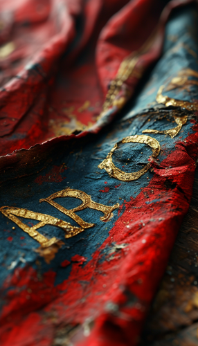 Roman influenced flag-like background with the word "APOLLO" embezzled | ultra realistic | creative HD | --v 6.0 --stylize 750 --style raw --ar 4:7 --c 0
