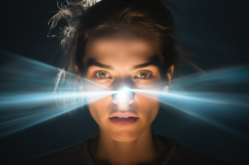 beams of light running through the silhouette of a woman gracefully falling backwards