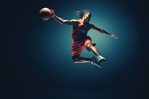 Minimalist, a basketball player jumping from half court to dunk the basketball, michelin star, intricate details, beautifully color graded, Unreal Engine, Cinematic , Color Grading, Editorial Photography , Photography, Photoshoot, Shot on 70mm lens, Depth of Field, DOF, Tilt Blur, Shutter Speed 1/1000, F/22, White Balance, 32k, Super-Resolution, Megapixel, Pro Photo RGB , VR , Good, Massive, Half rear Lighting, Backlight, Natural Lighting, Incandescent, Optical Fiber, Moody Lighting, Cinematic Lighting, Studio Lighting, Soft Lighting, Volumetric, Conte-Jour, Beautiful Lighting, Accent Lighting, Global Illumination, Screen Space Global Illumination, Ray Tracing Global Illumination, Optics, Scattering, Glowing, Shadows, Rough, Shimmering, Ray Tracing Reflections, Lumen Reflections, Screen Space Reflections, Diffraction Grading, Chromatic Aberration, GB Displacement, Scan Lines, R a y Traced, Ray Tracing Ambient Occlusi on, Anti-Aliasing, FKAA, TXAA, RTX, SSAO, Shaders, OpenGL-Shaders, GLSL-Shaders, Post Processing, Post-Production, Cell Shading, Tone Mapping, CGI, VFX, SFX, elegant, Hyper realistic, volumetric, photorealistic, ultra photorealistic, ultra-detailed, intricate details, 8K, super detailed, full color, ambient occlusion, volumetric lighting