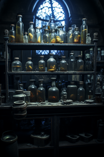 hyper realistic alchmy lab, gothic, dark, glowing magic, depth of field dark, gothic, horror, sinister, hyperrealistic, cinematic, depth of field dark, gothic, horror, sinister, hyperrealistic, cinematic, depth of field 16:9 dark, gothic, horror, sinister, hyperrealistic, cinematic, depth of field --ar 2:3