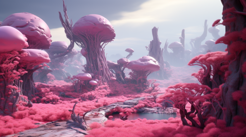 magenta fantasy landscape depth of field, 16k, cinematic, photorealistic, unreal detail, ultra engine, sony a7111, cinematic lighting --ar 16:9 --chaos 10