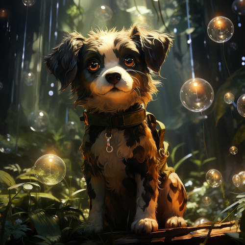 a Dog-Eyed Bubble-Boy under the moonlight that passes through the bamboo forest, with Fireflies, 8k --s 1000