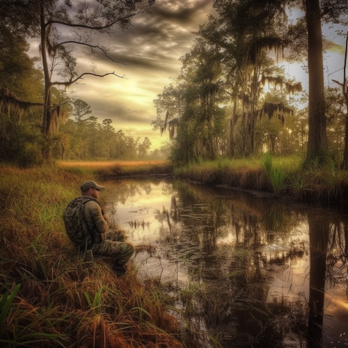 Louisiana deer hunting, beautiful picture background, birthday decor elements, masculine --s 750 --v 5.0