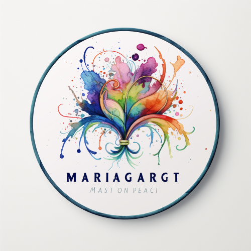 logo design on a white background, as additional elements an embroidery hoop, needle and thread, there should be splashes and drips of watercolor paint, the company is called Magicart
